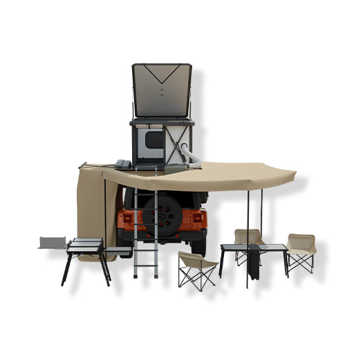 A one-touch retractable roof bedroom instantly transforms the vehicle into a dining room and kitchen, offering multiple uses in one vehicle. Conceal living components during wilderness exploration, and unfold a panoramic camping ecosystem when parked, easily immersing you in any natural environments. Provides modular support for all scenarios to meet the needs of outdoor exploration.